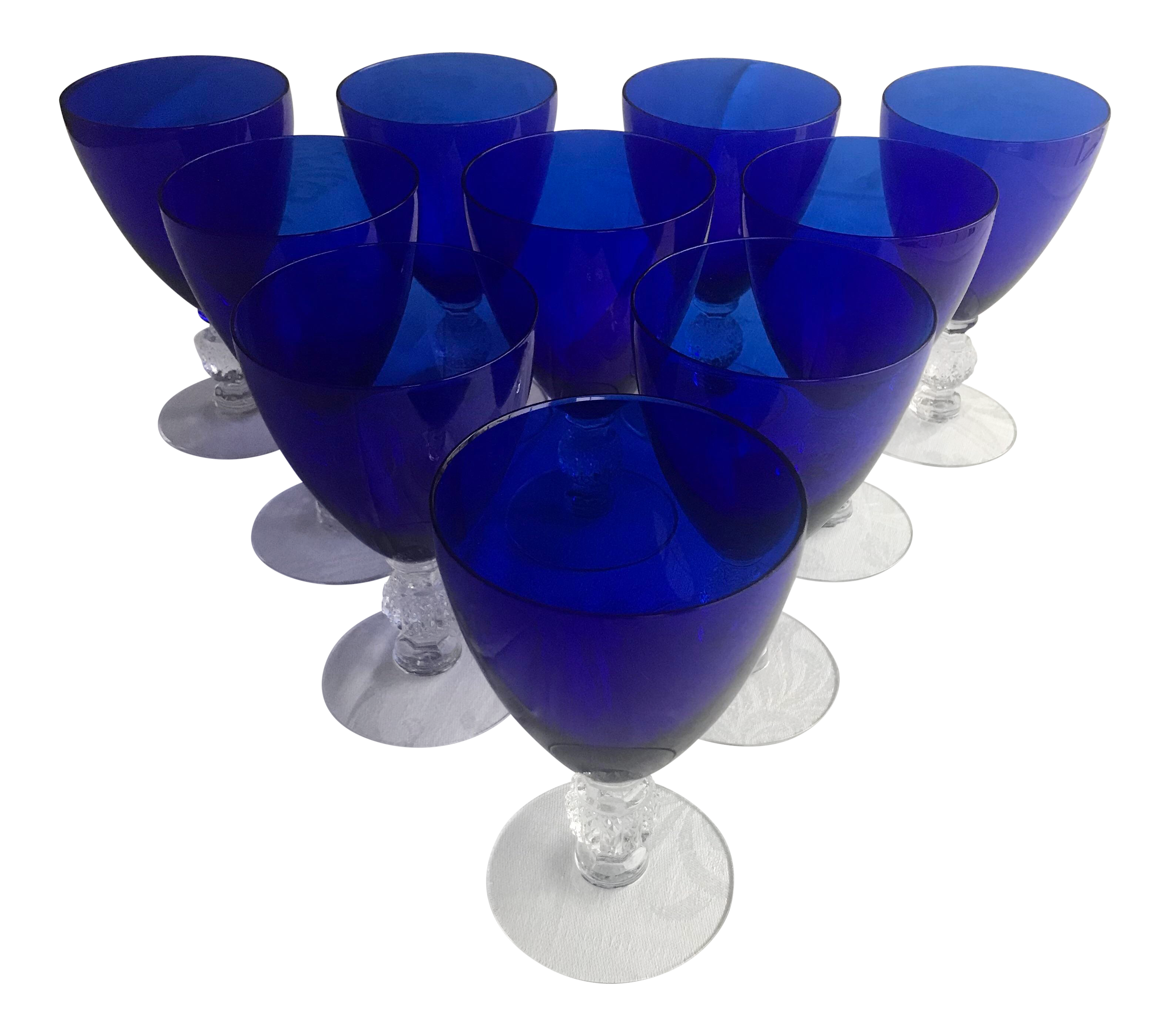 Matching Pair Of Vintage Cobalt Blue Wine Glasses With Clear Ball Stem Base Ebay - This set of six cobalt sapphire blue stem glasses is offered with the original box.