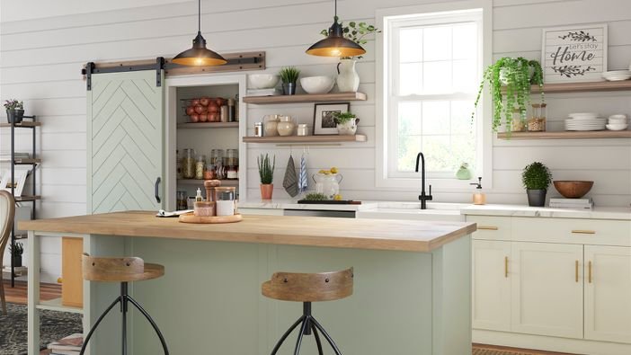 Wooden Hanging Kitchen Shelves : Kitchen hood ideas (diy and create range vent hood) #farmhouse #stainlesssteel #diy #design #modern #rustic #frenchcountry #metal #craftsman #wooden.